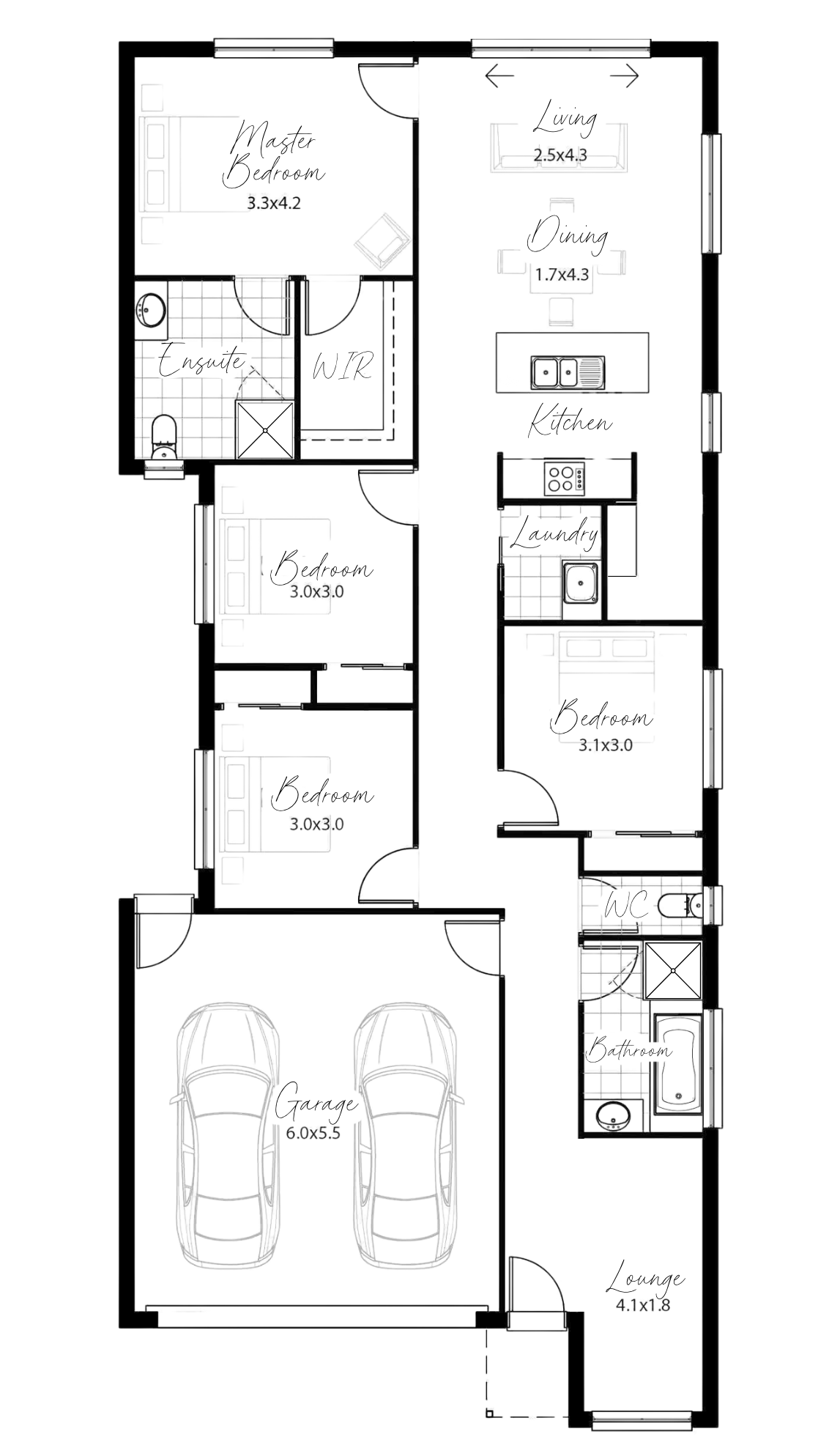 The Niche 19 layout offers a home designed with comfort and convenience in mind. A well-appointed master bedroom, featuring a walk-in robe and ensuite, provides a private sanctuary for relaxation. Three additional bedrooms offer comfortable accommodations, each conveniently located near the central bathroom. The heart of the home features a cohesive living and dining area that flows seamlessly into a functional kitchen with ample pantry space. A study provides a versatile space for work or hobbies. The design also includes an alfresco area, perfect for outdoor entertainment. A garage with direct home access ensures practicality and security, completing this well-rounded home design.